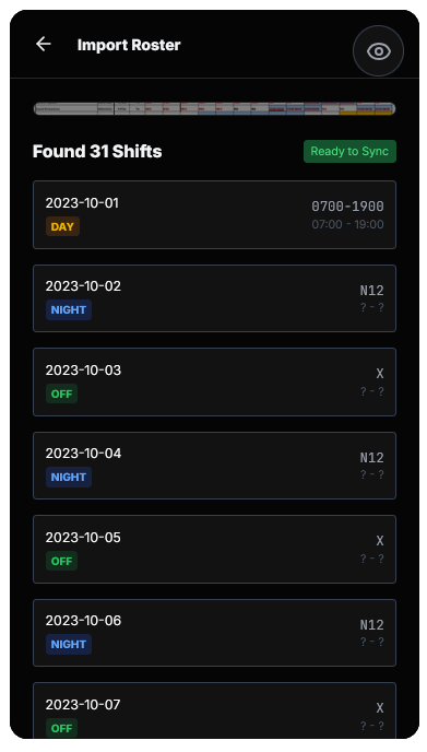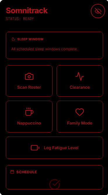 - Copy: “No manual entry. Somnitrack scans your paper roster and instantly builds your sleep strategy for the month.”